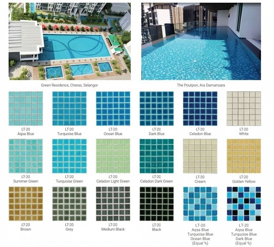 ADA PELBAGAI JENIS TILES DIGUNAKAN DALAM BINAAN KOLAM.